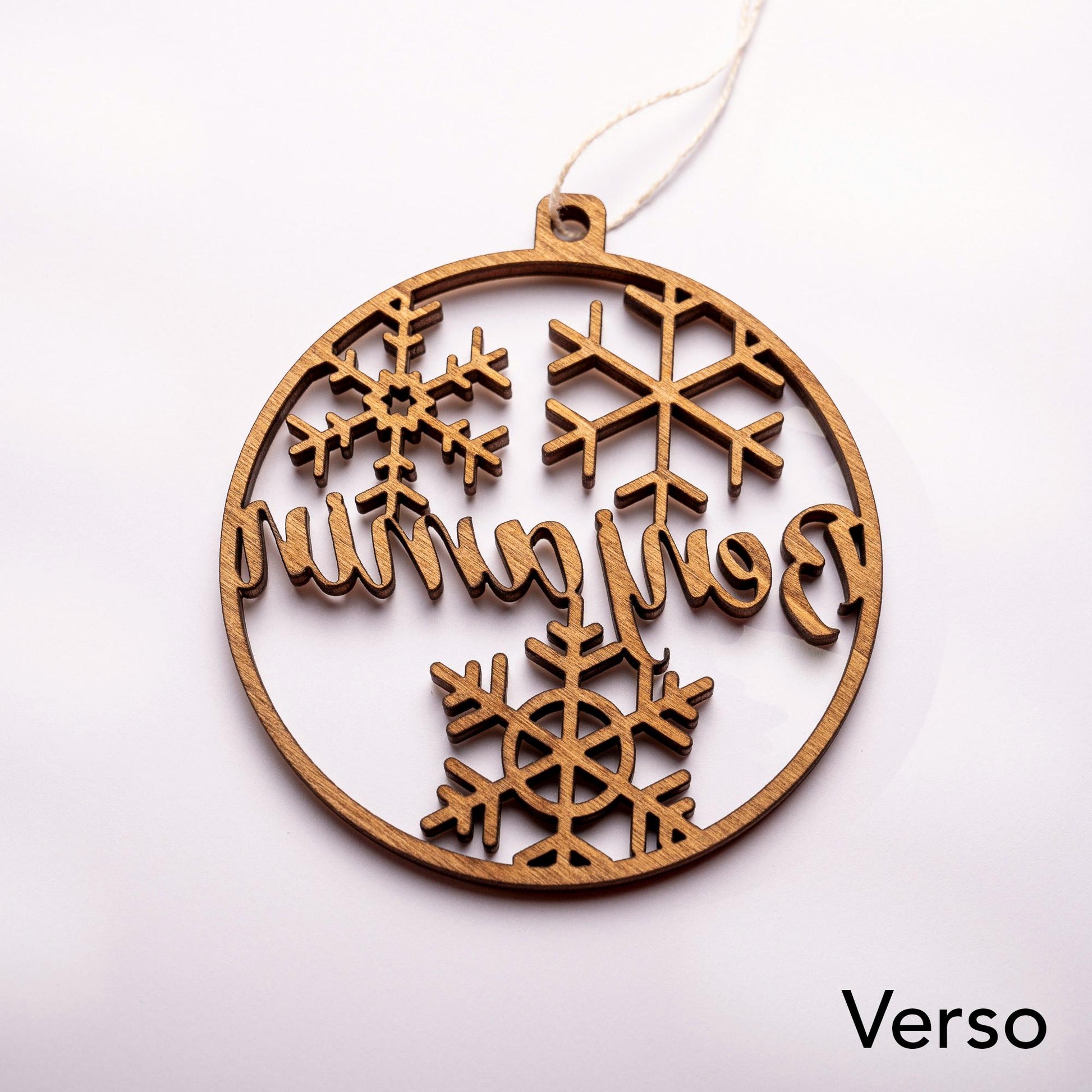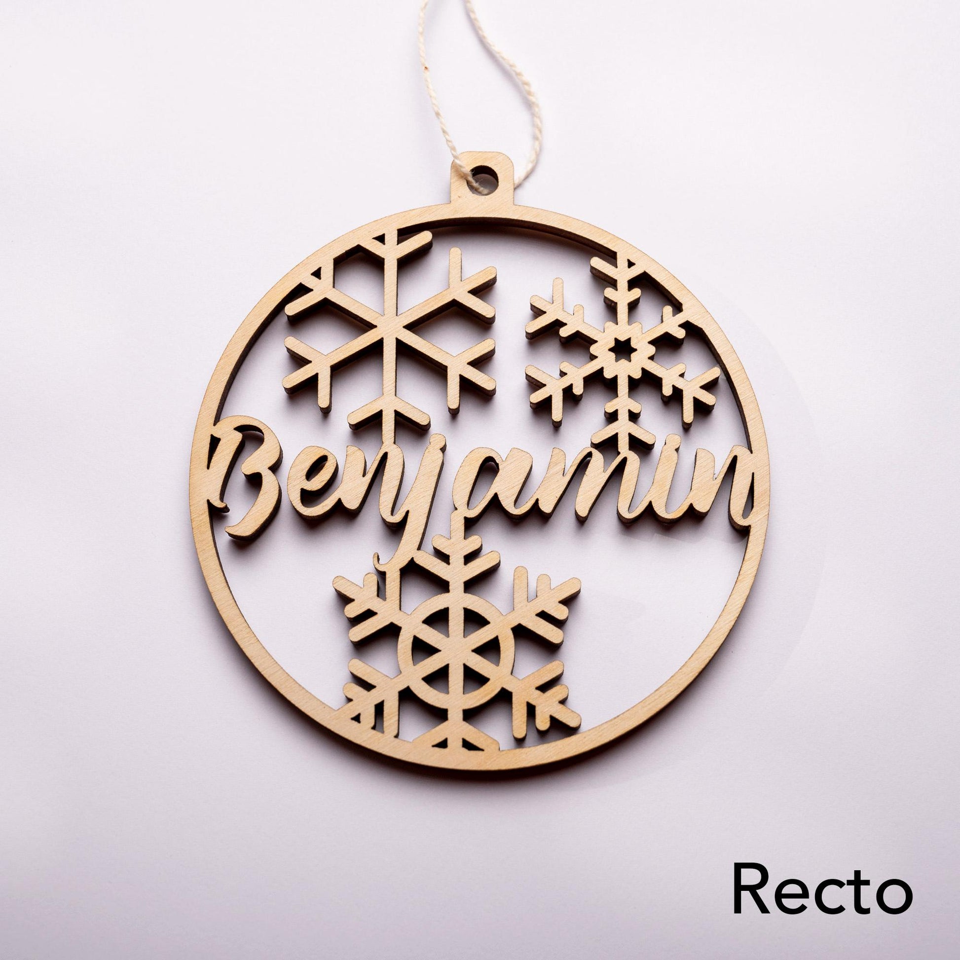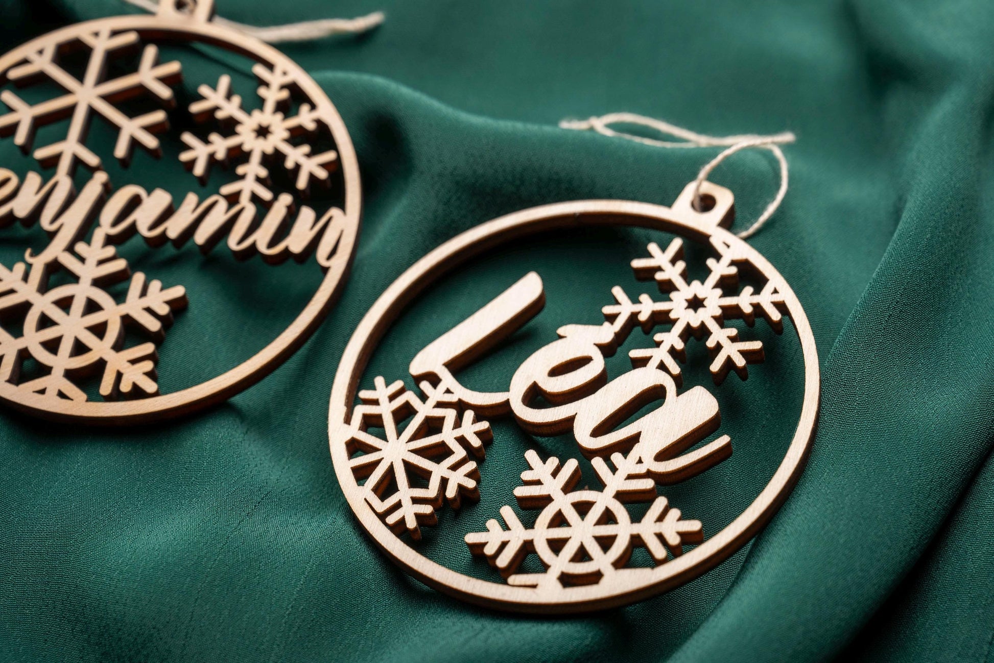 Add a magical and personalized touch to your tree with our wooden Christmas bauble with name and snowflakes!