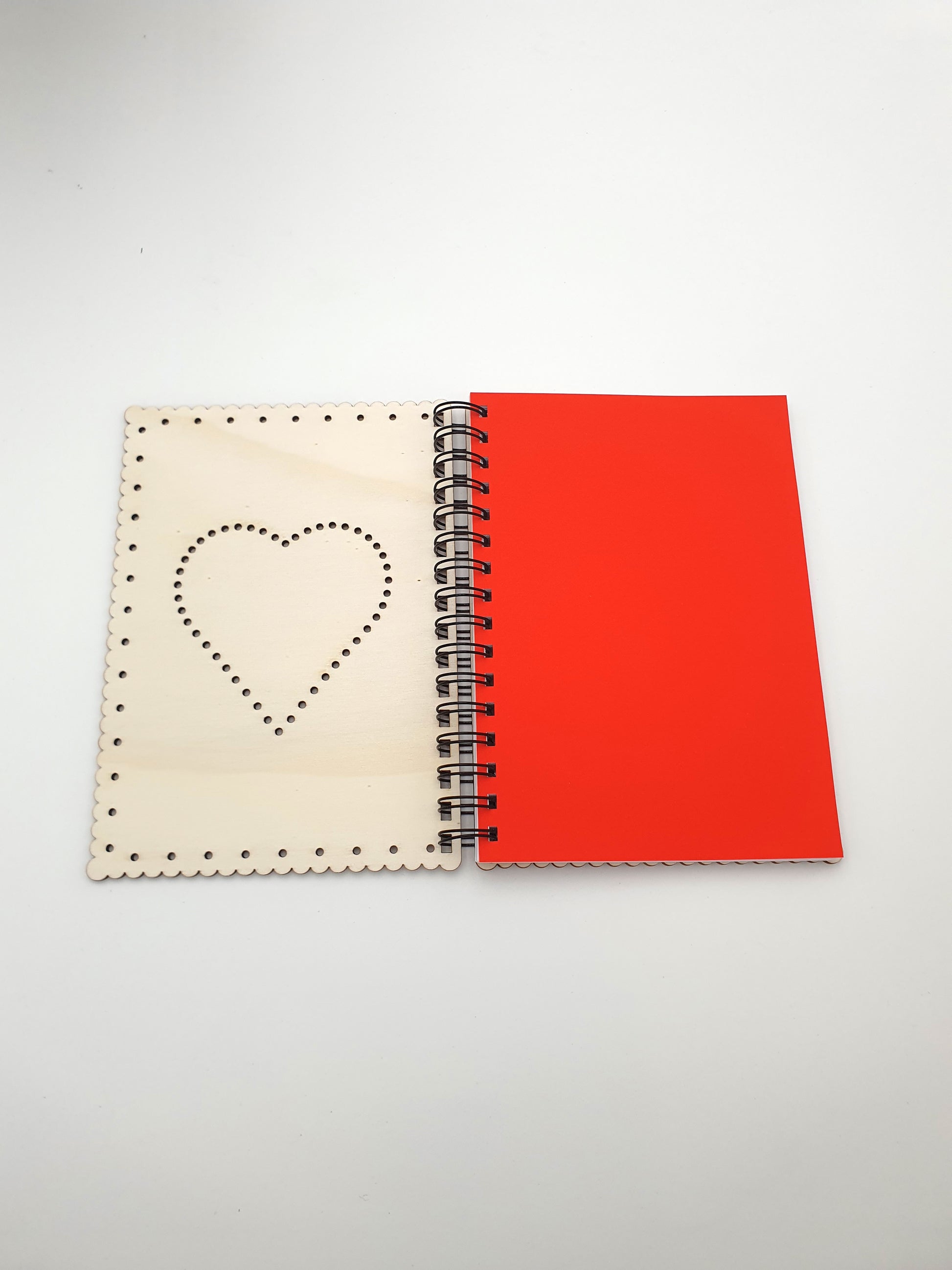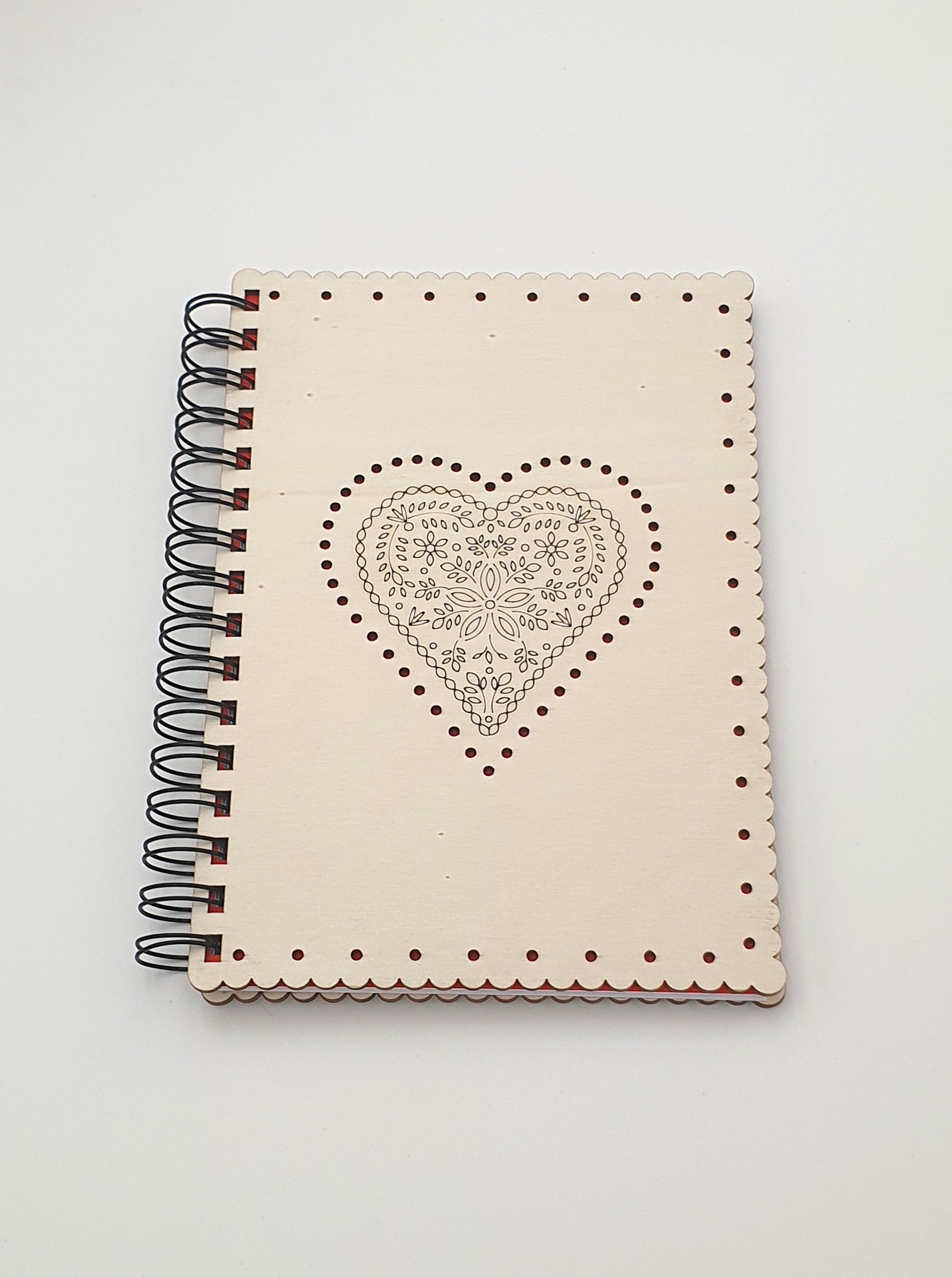 Carnet à spirale en bois A5 – "Hartzala" Motif cœur fleuri traditionnel alsacien – Cahier artisanal décoratif rechargeable