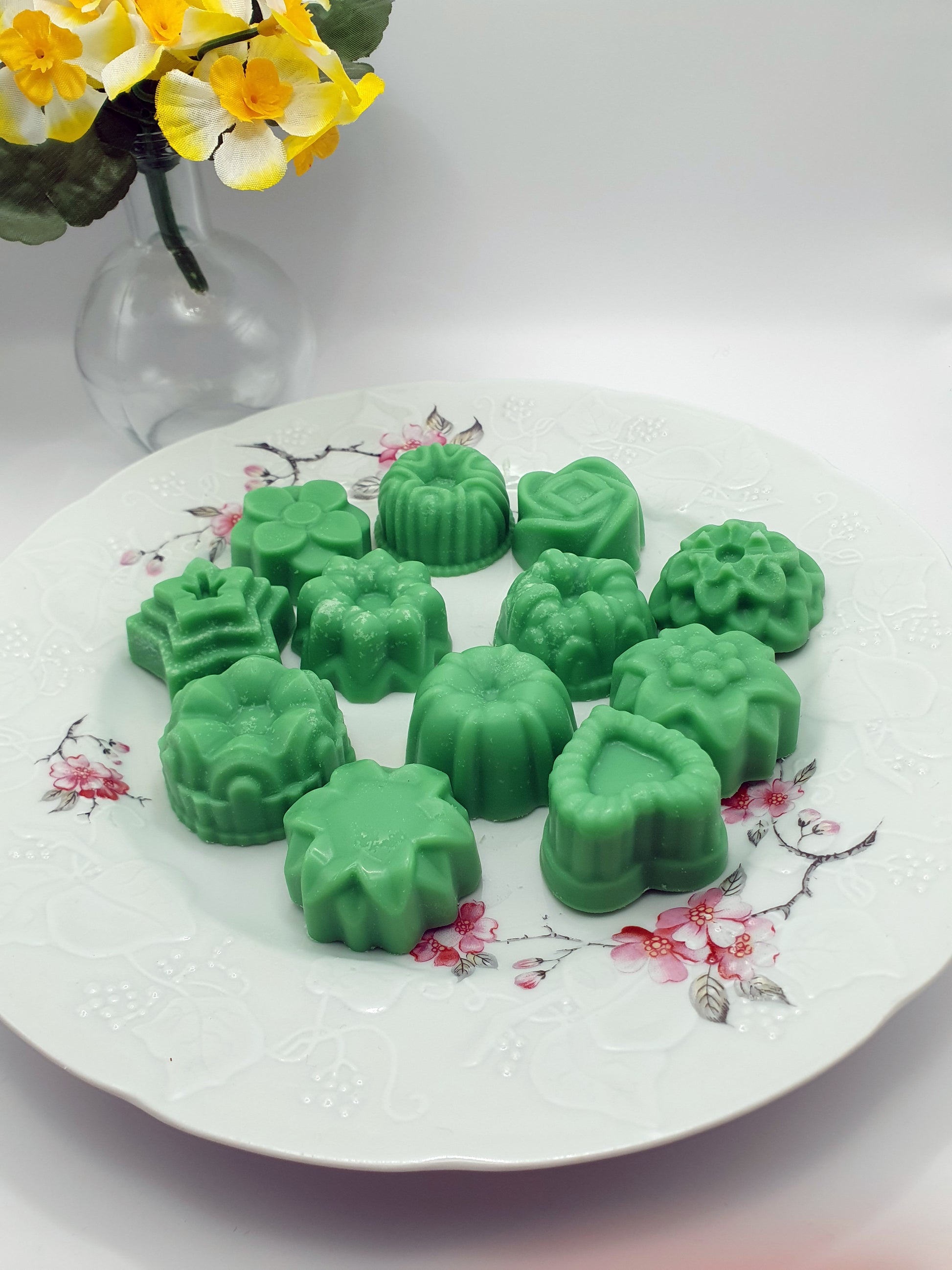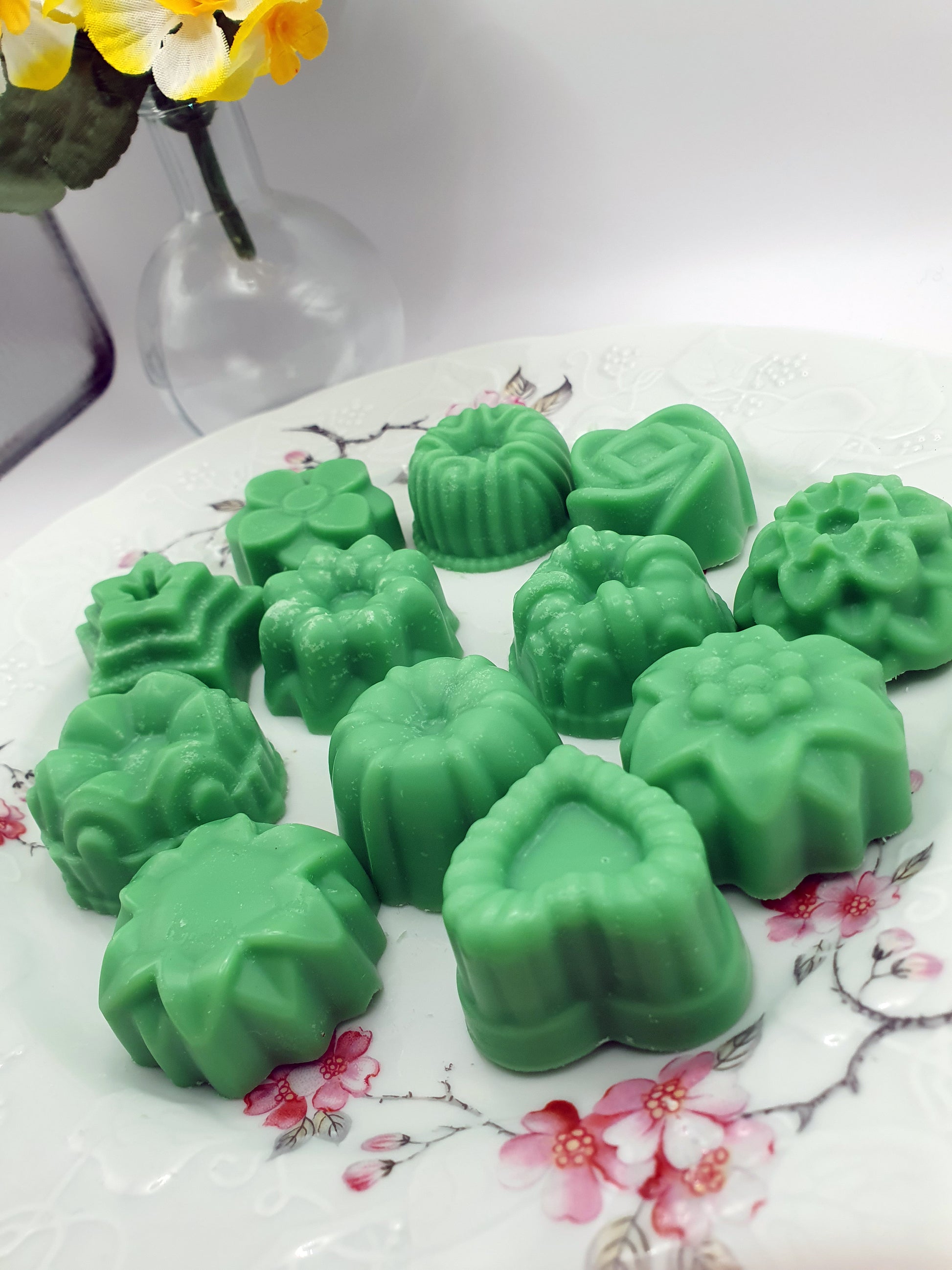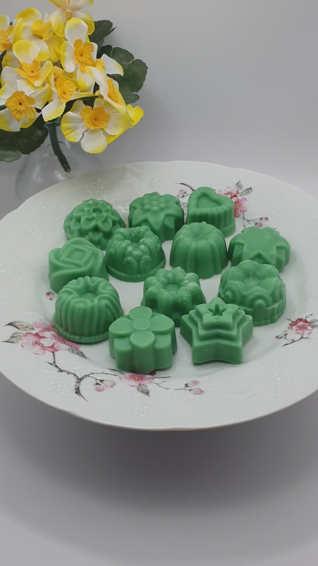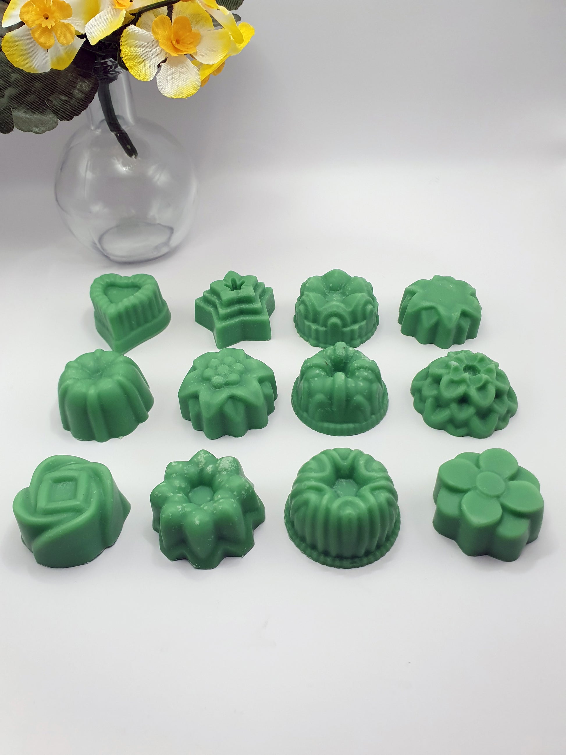 Ils sont coulés dans des moules aux formes variées d’inspiration florale et pâtisserie (formes aléatoires à chaque lot).