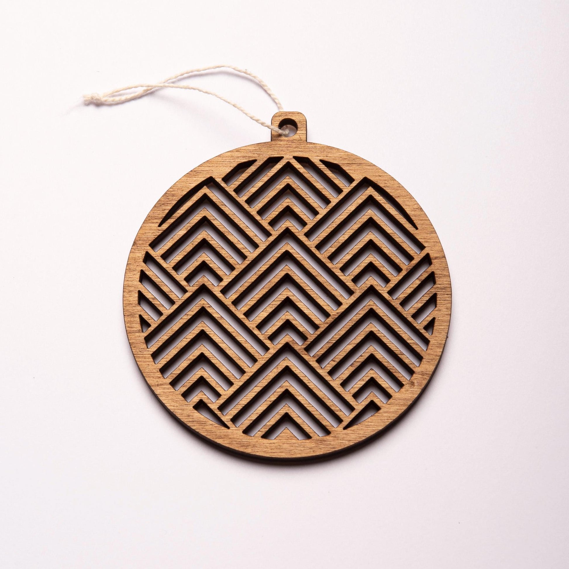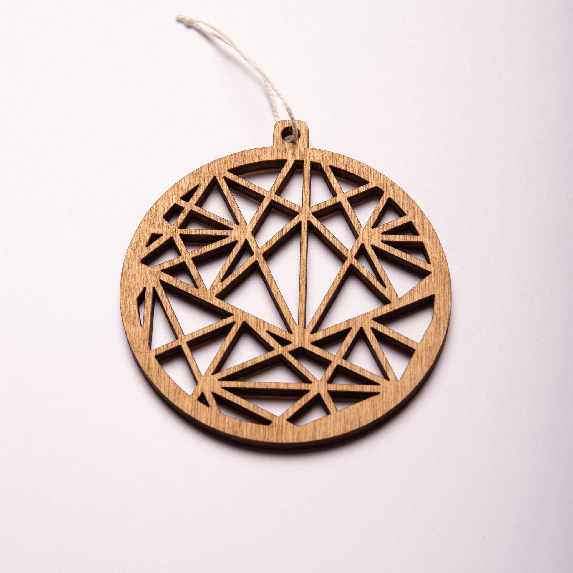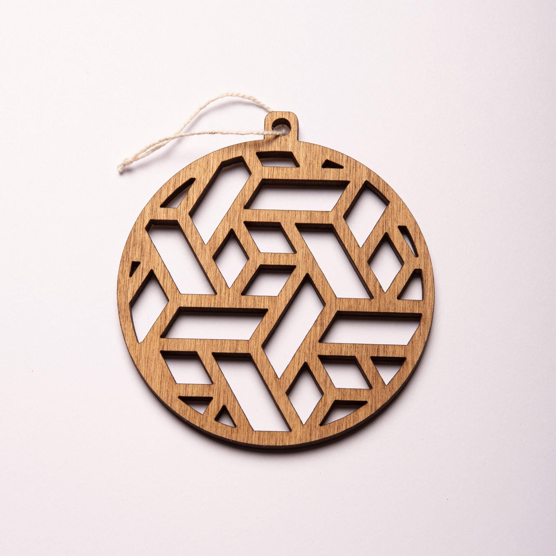 Set of 3 Wooden Christmas Baubles - Modern Geometric Decorations - Laser Cut Plywood Handcrafted Ornaments - Tree Hangings