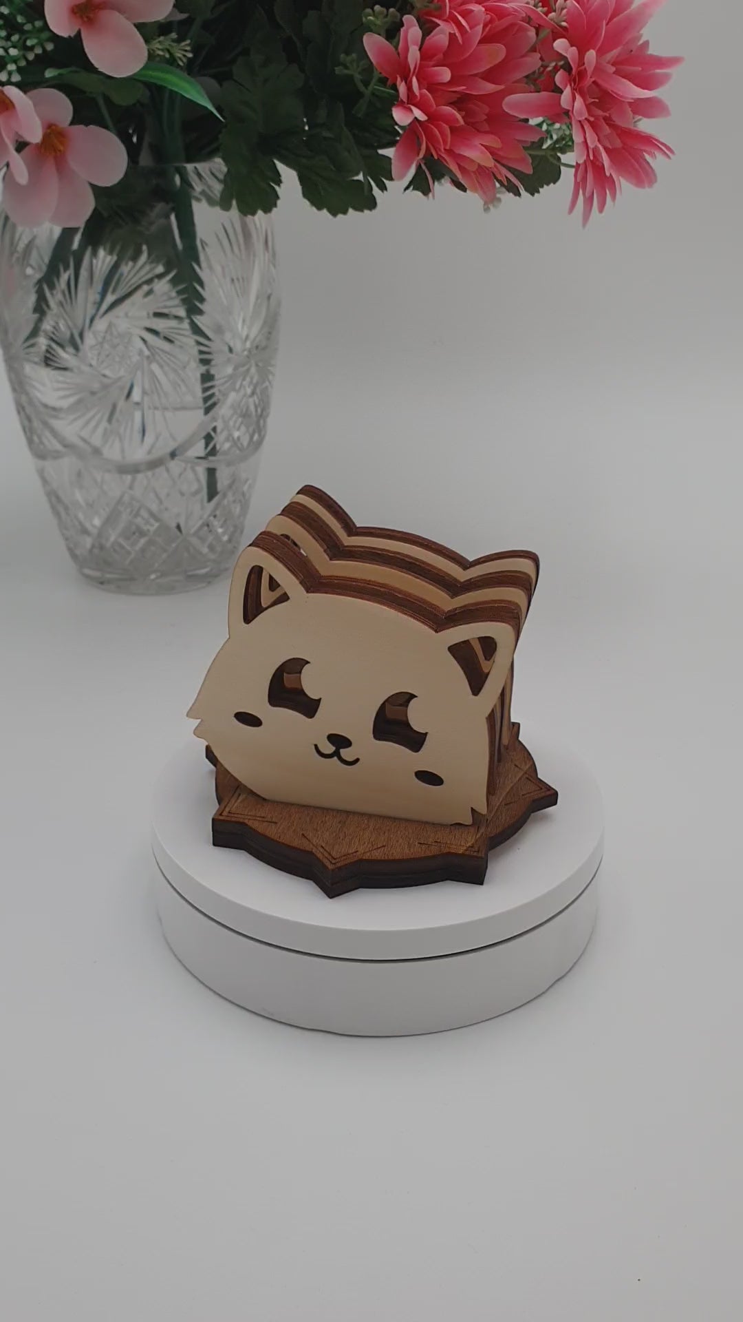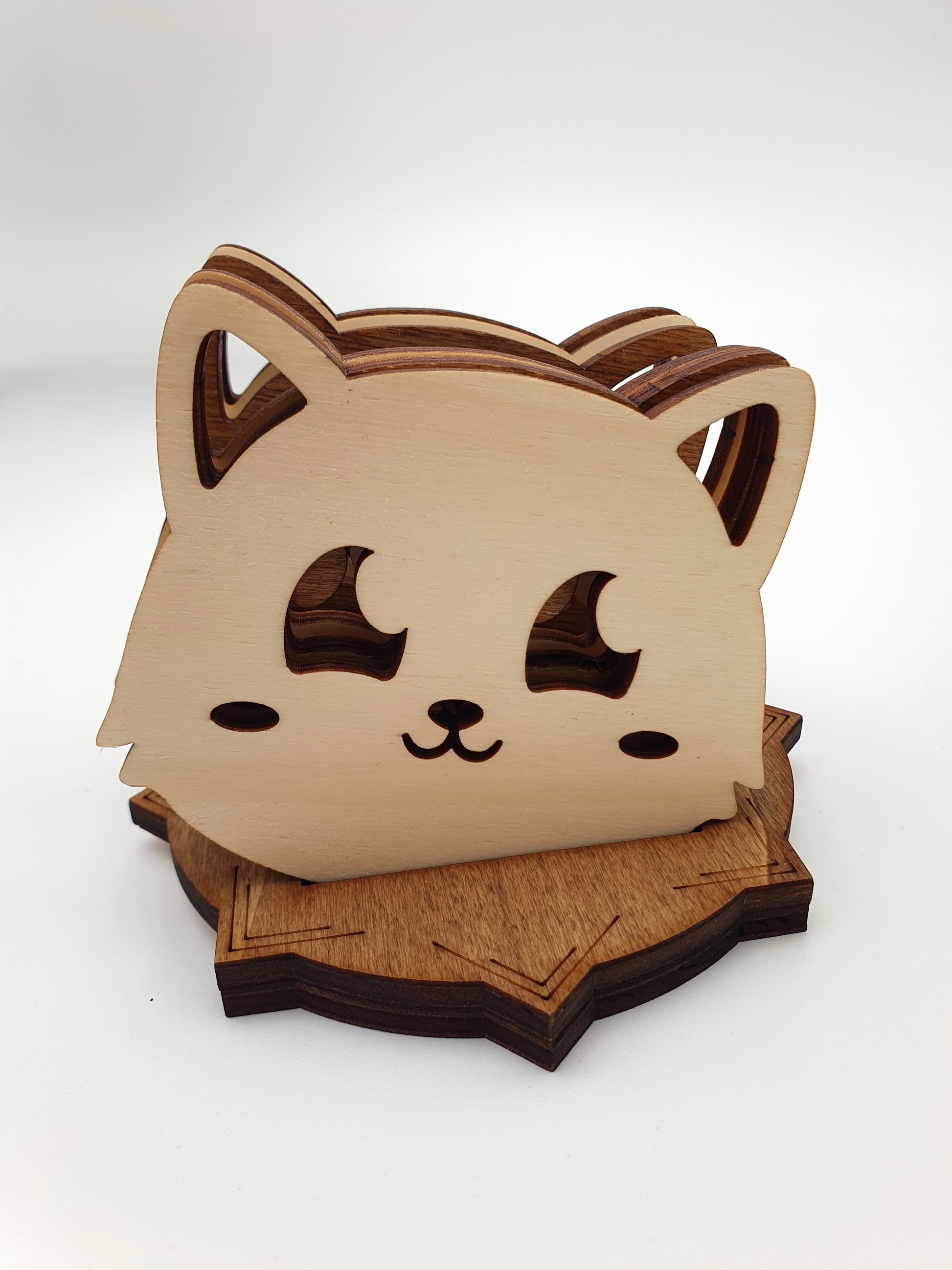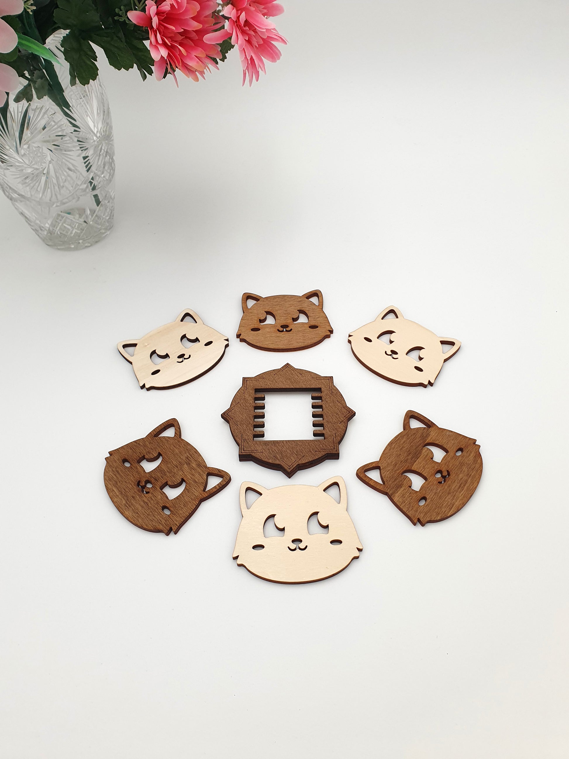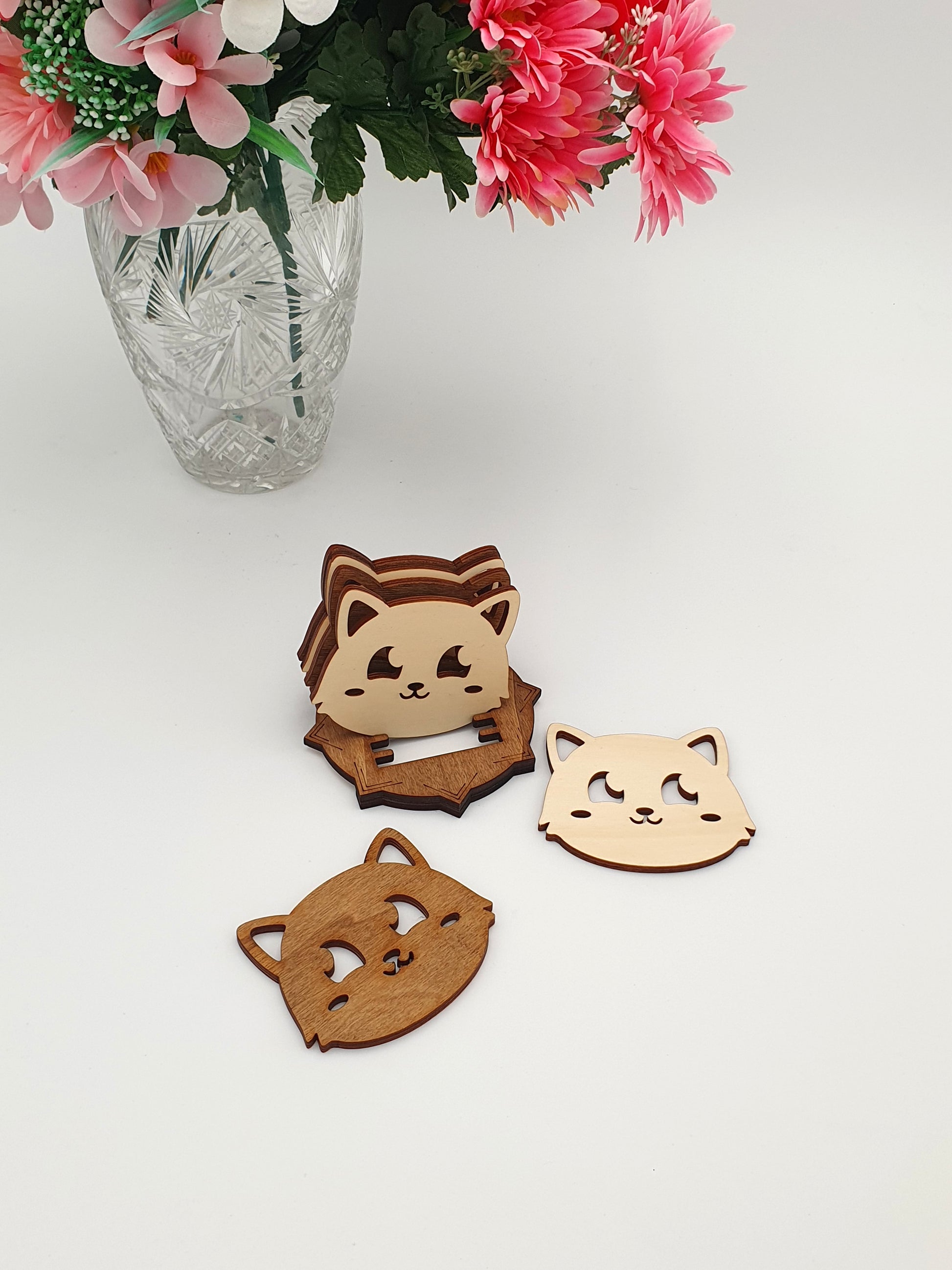 Kawaii Cat Wooden Coasters - Cute Table Accessory - Gift for Cat Fans - Handmade in France