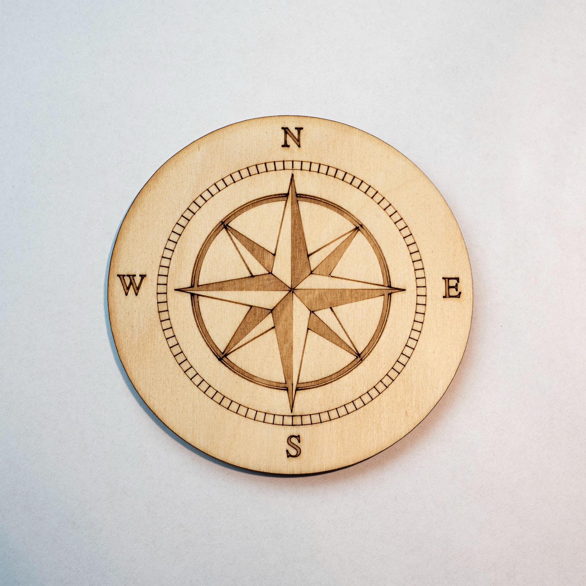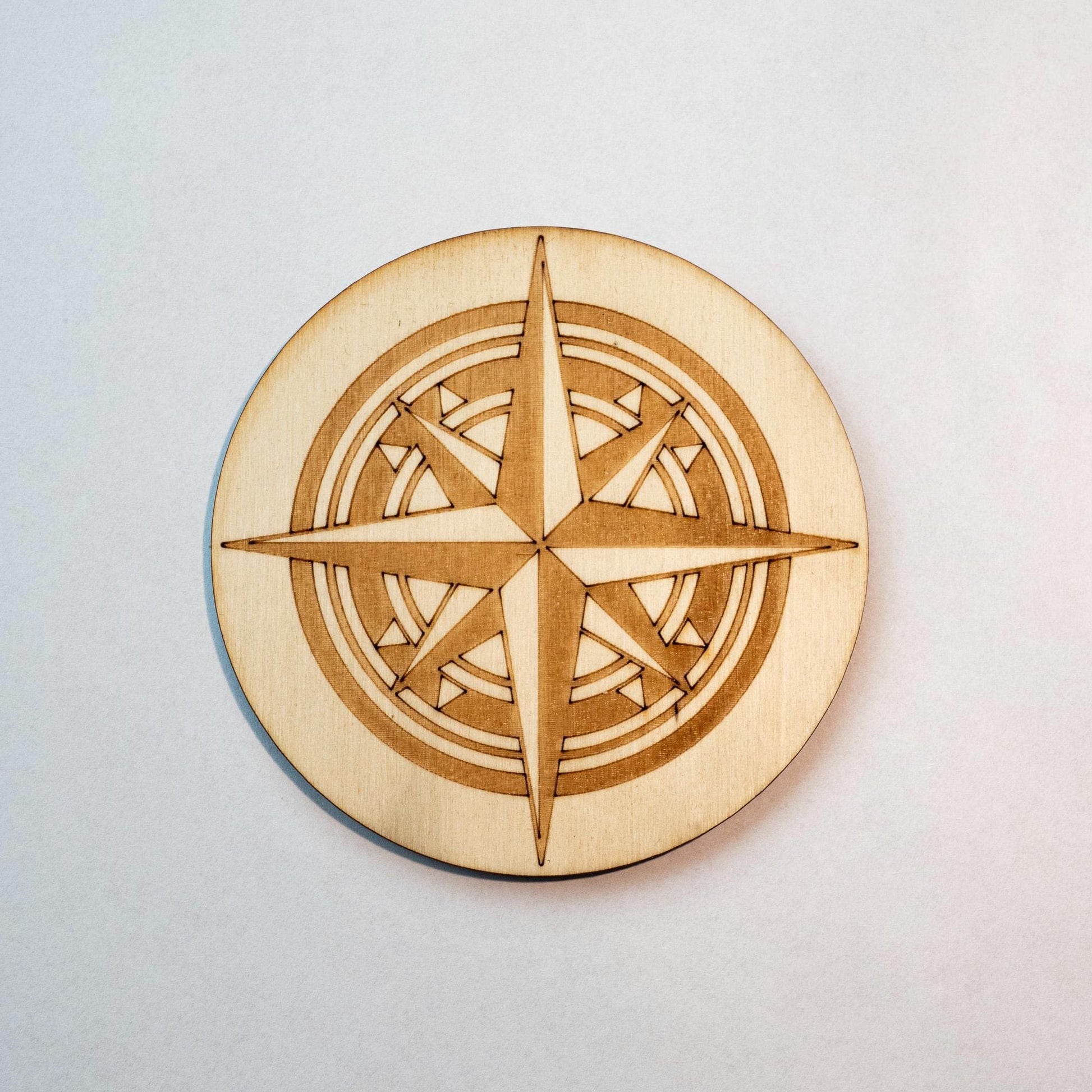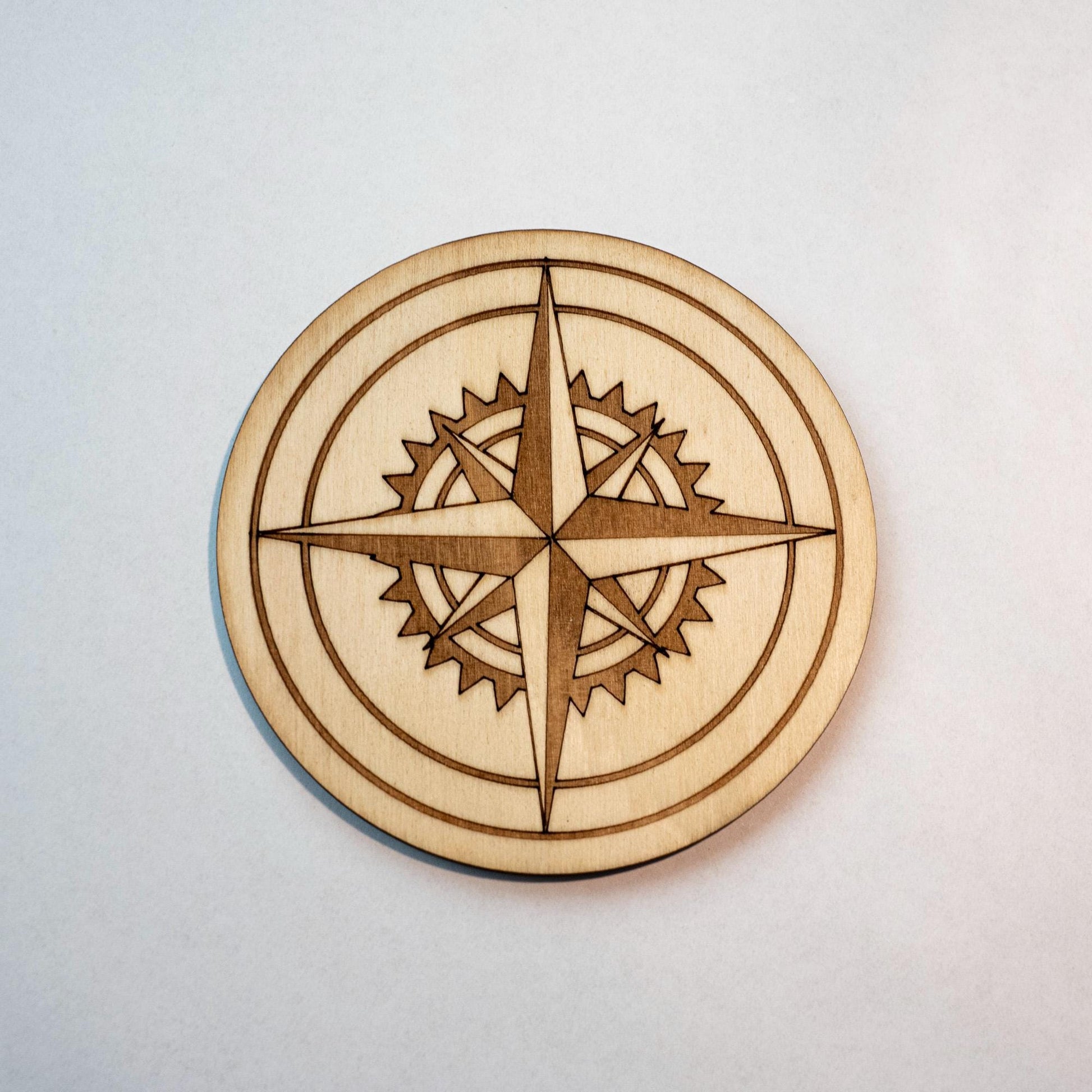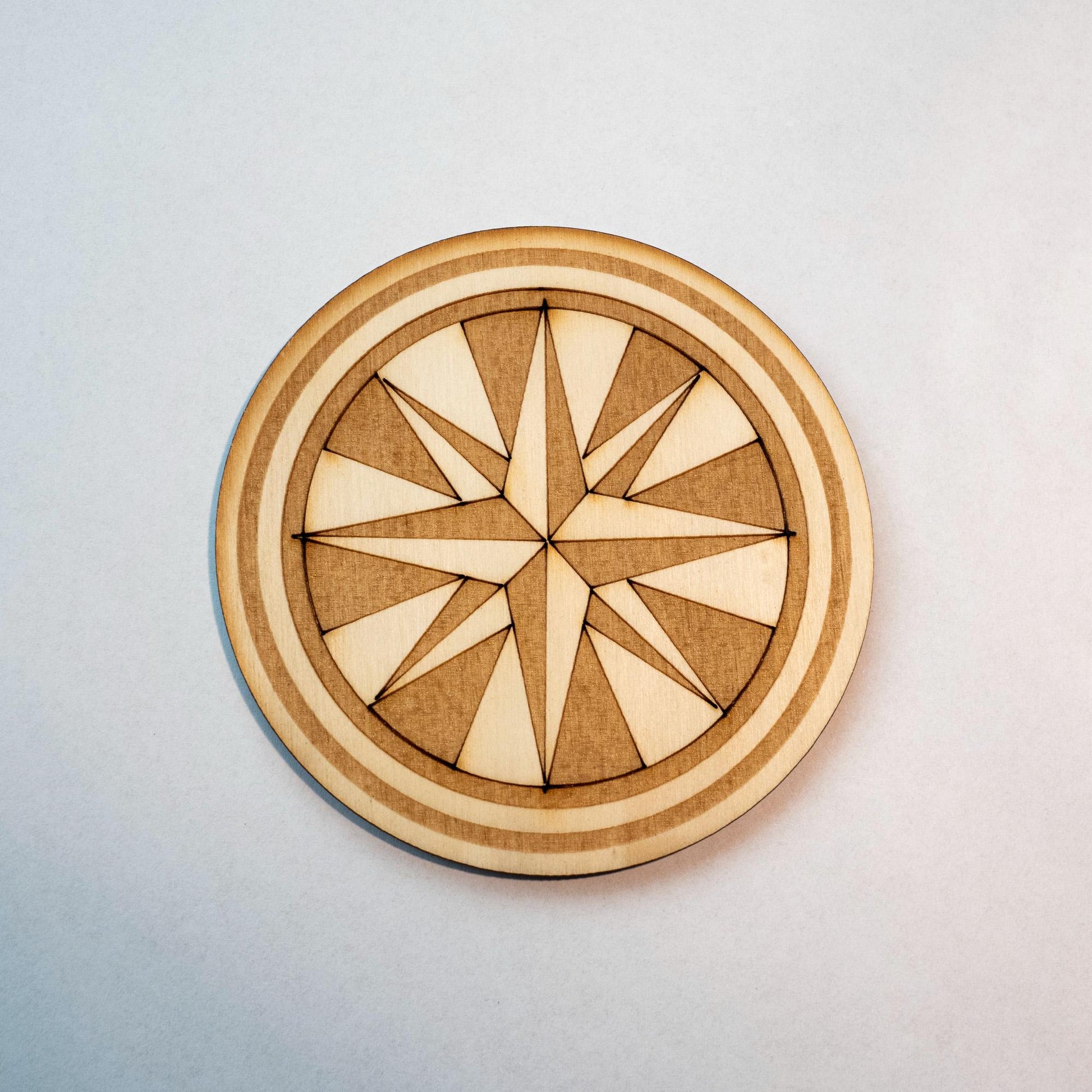 Bring a touch of retro elegance to your table with this set of 6 wooden coasters inspired by wind roses, compasses and compasses!