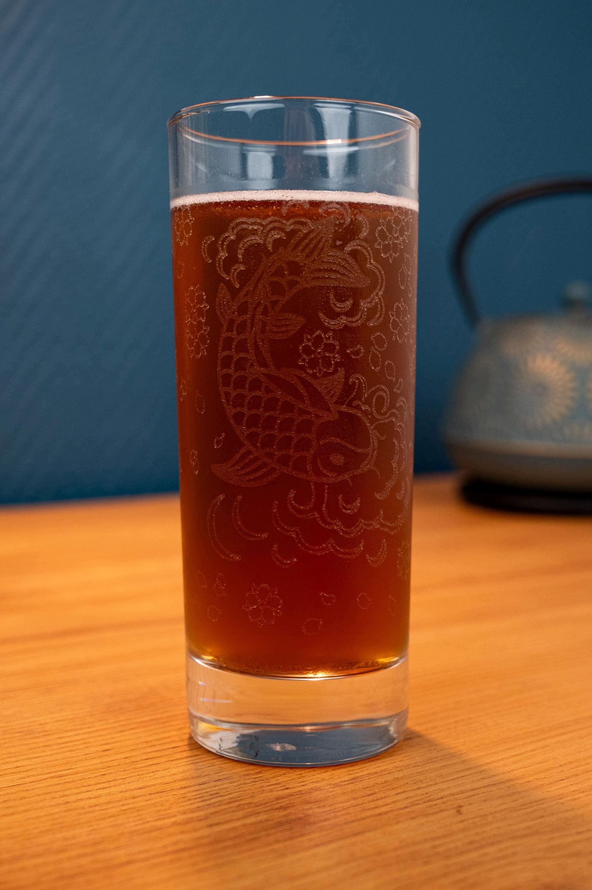 Japanese koi carp engraved glass Lucky fish – 33cl Asian Zen style glass – Laser craftsmanship Made in France