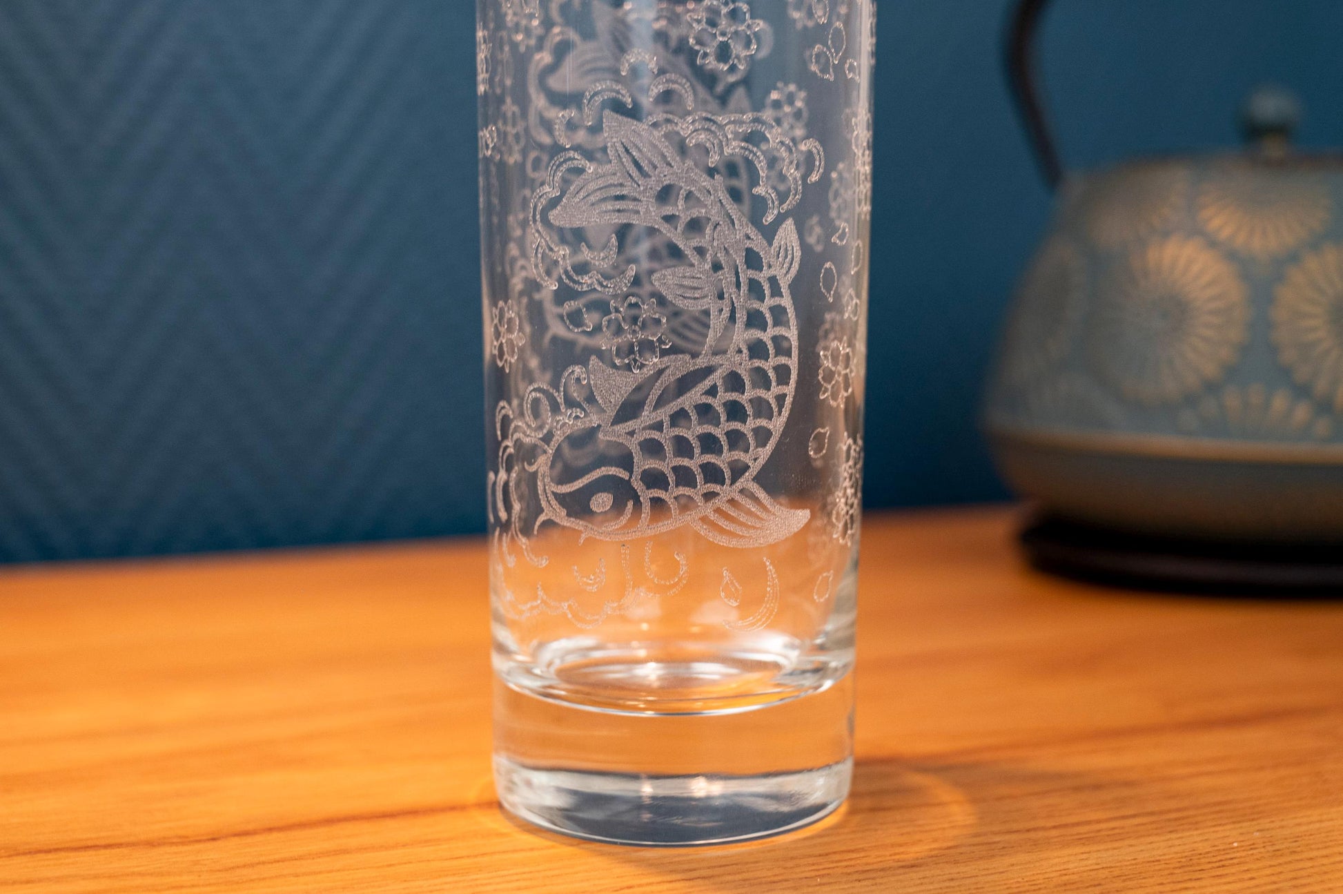 Bring a touch of Zen and refinement to your table with this magnificent laser-engraved glass, decorated with a Japanese koi carp motif.
